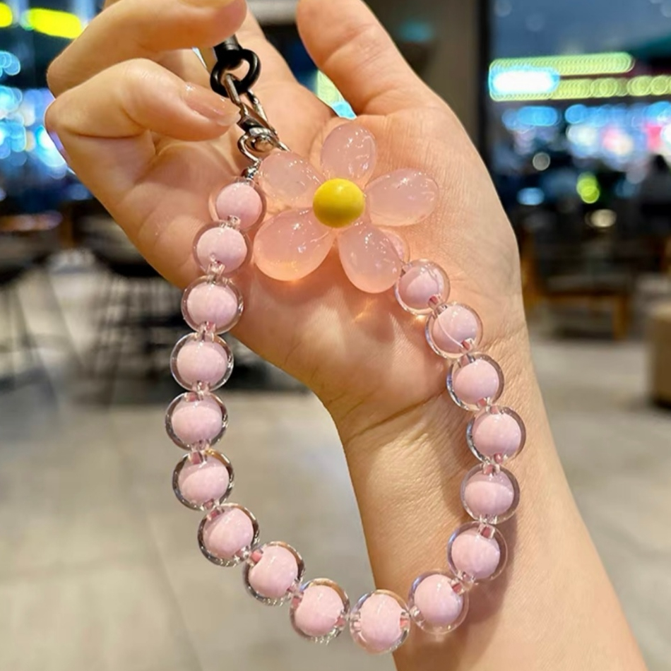 Seagloca Macaron Màu Hạt Cánh Hoa Dây Handmade Đính Hạt Hoa Điện Thoại Di Động Dây Đeo Cổ Tay Cho Người Phụ Nữ 35