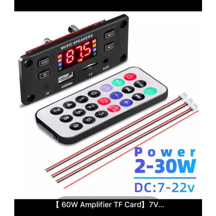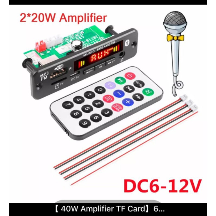 Mạch giải mã âm thanh đa năng bluetooth +công suất 20w,40w,60w MP3 9v-12v,FM blutooth 5.0,tặng pin 2032
