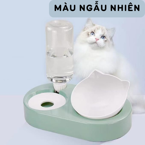 Bát Ăn Cho Mèo Kèm Bình Nước Tự Động Nhả Hạt Và Nước Chất Liệu An Toàn - Petdreamvn