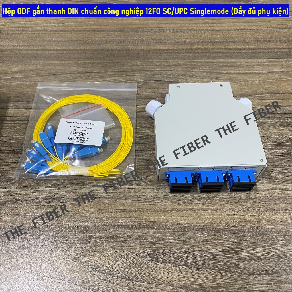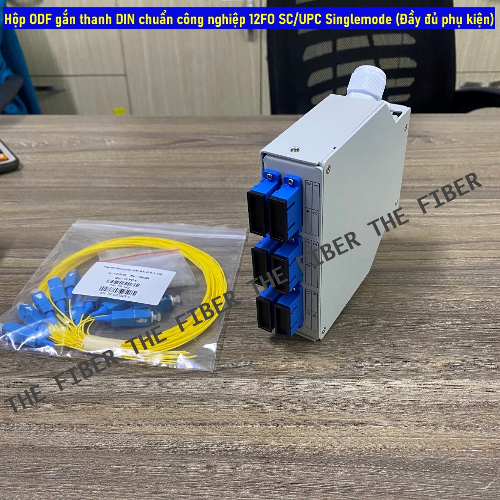Hộp ODF gắn thanh DIN chuẩn công nghiệp 12FO SC/UPC Singlemode (Đầy đủ phụ kiện)