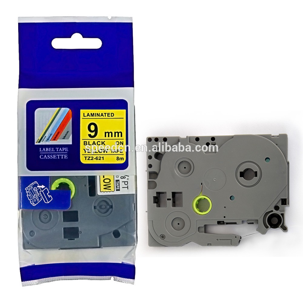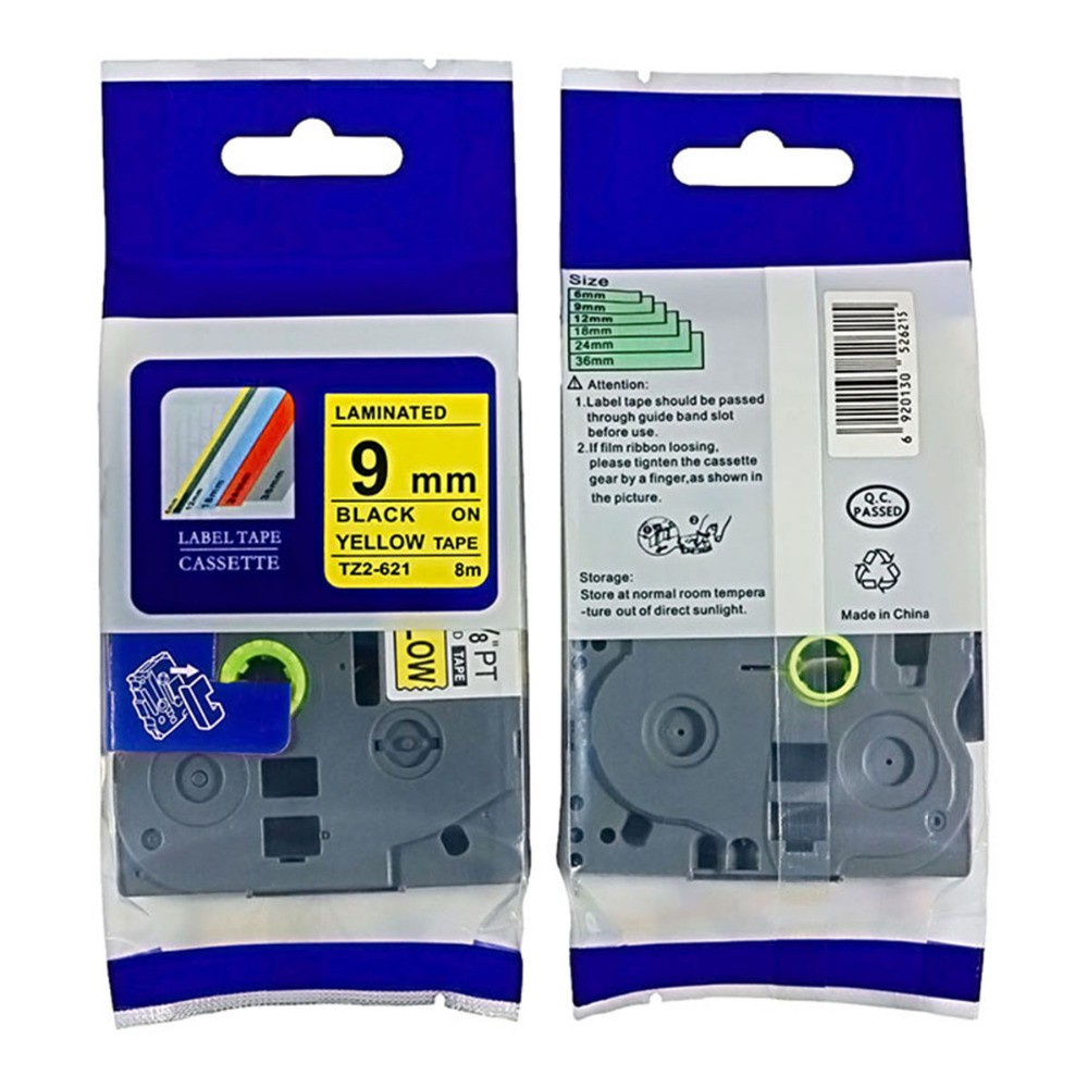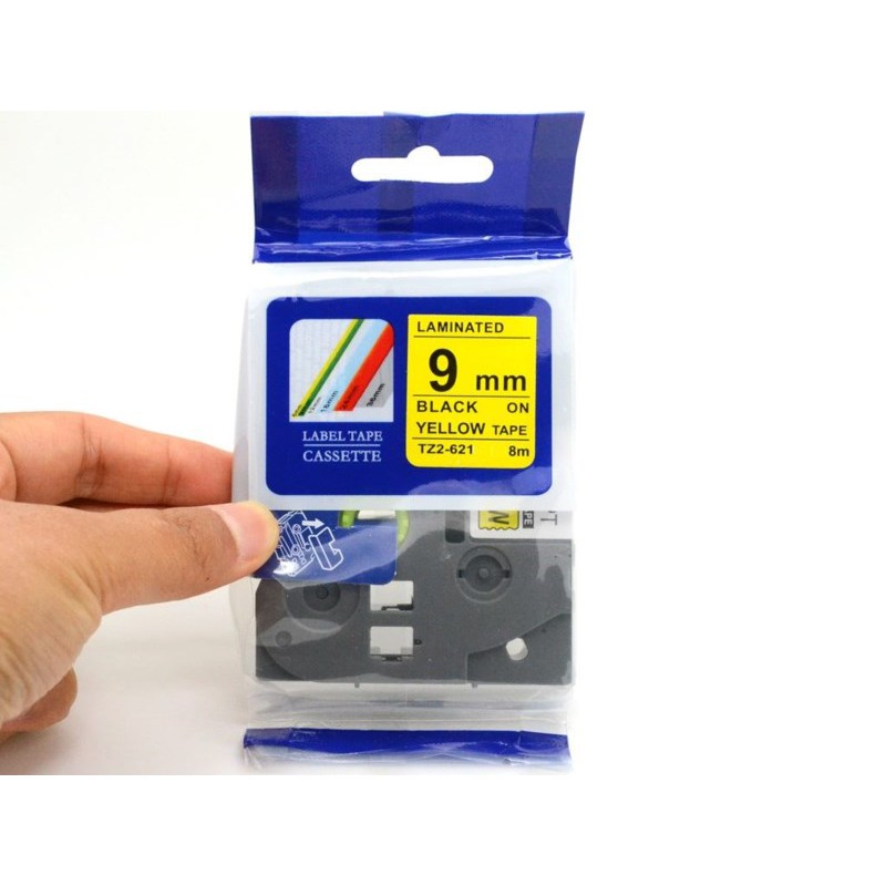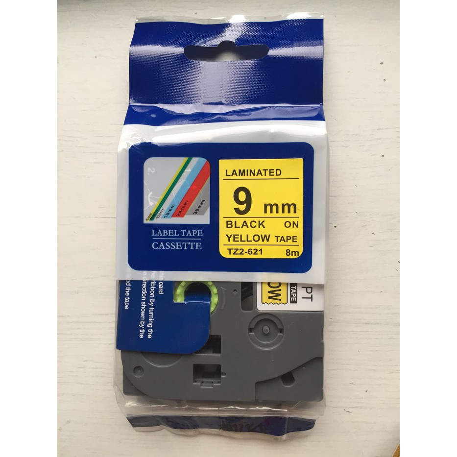 Nhãn in TZ2-621 tiêu chuẩn - Chữ đen trên nền vàng 9mm