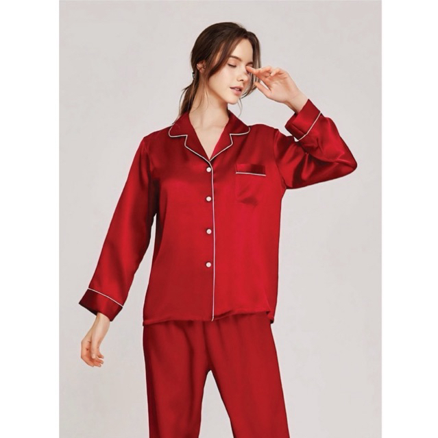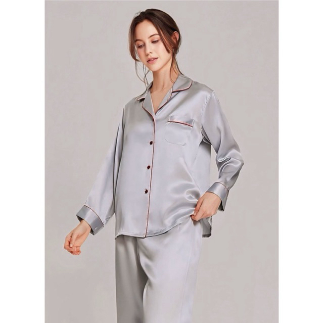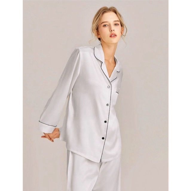 Bộ Đồ Ngủ Pijama Lụa Cao Cấp Không Nhăn Nhập Khẩu Bộ Ngủ Mặc Nhà Quần Dài Tay Dài Mềm Mịn Thoáng Mát Hồng Trắng Đen Ghi
