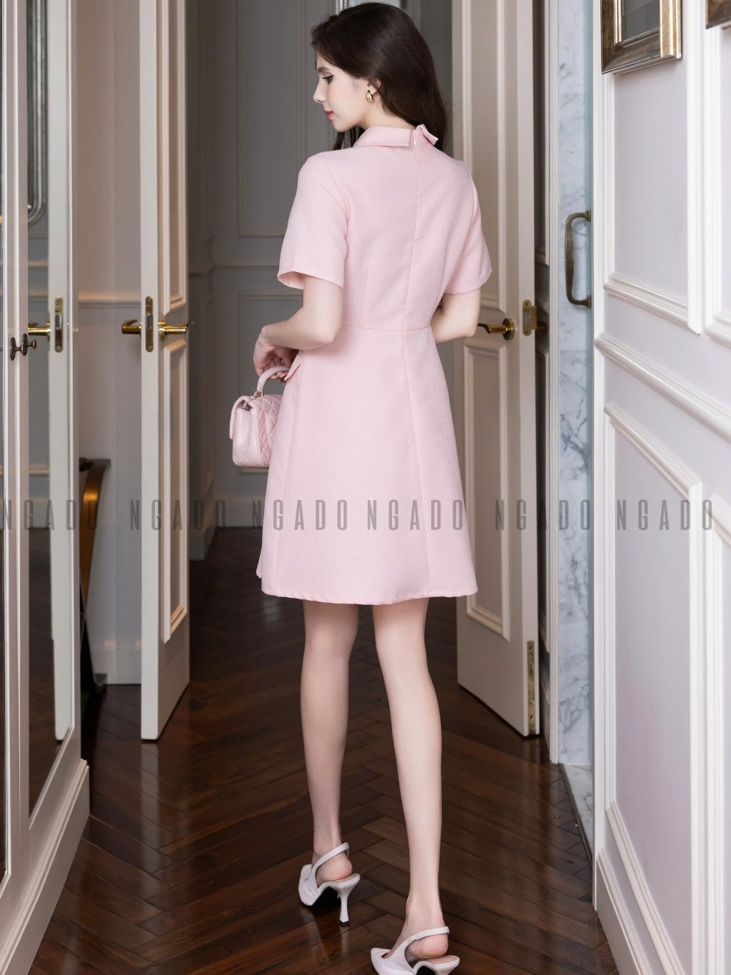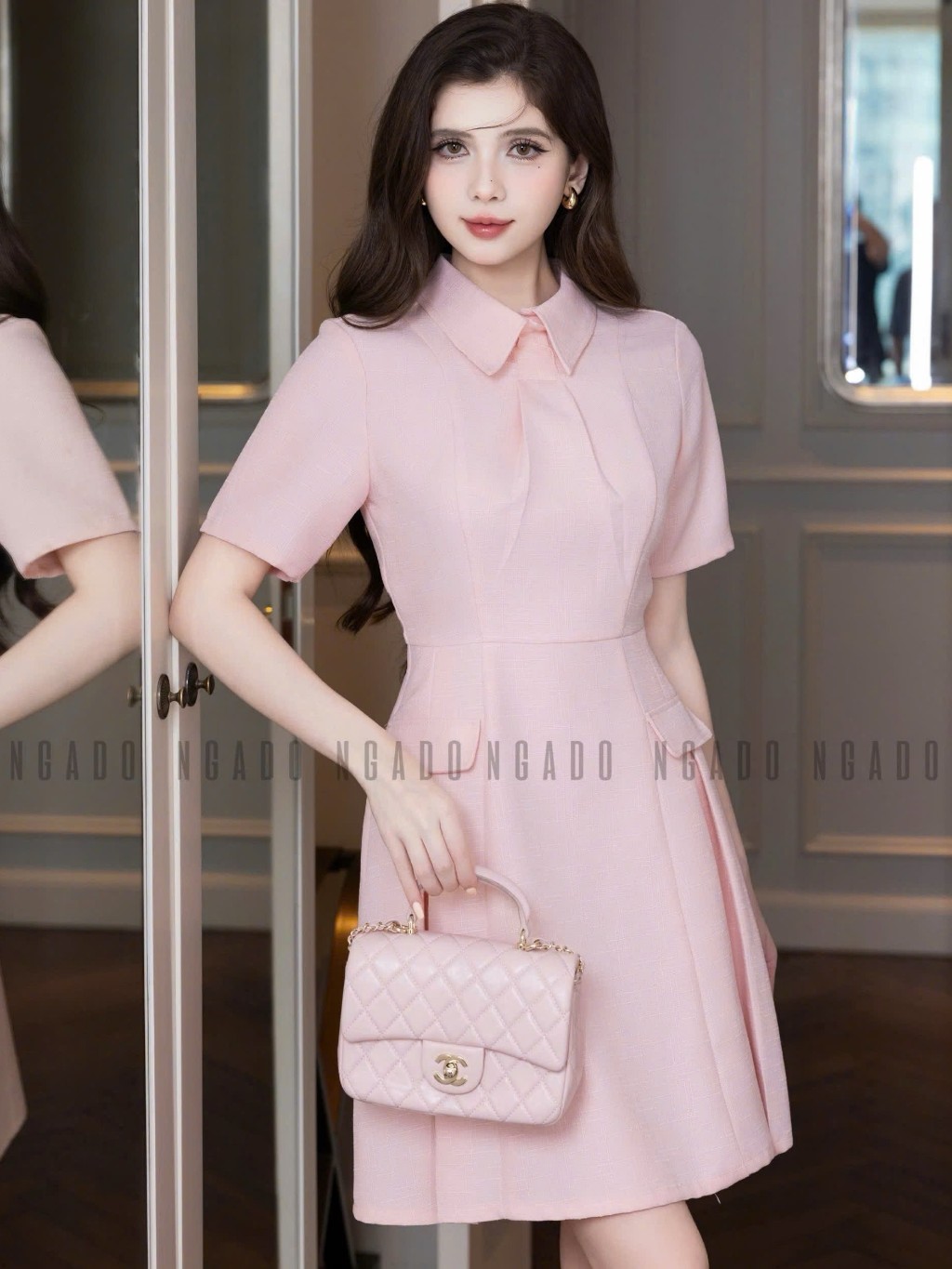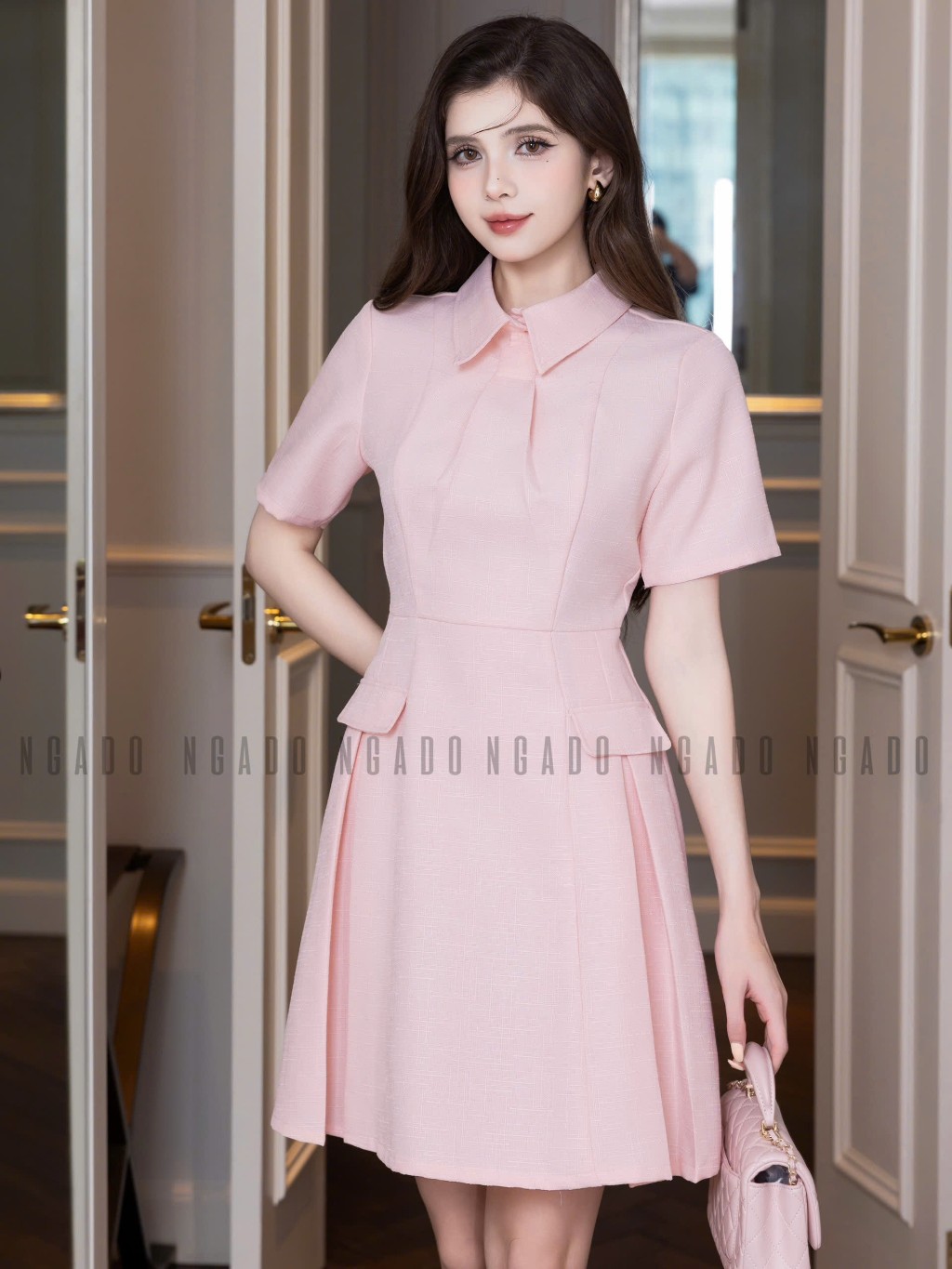 Đầm sơ mi hồng ngắn tay NGADO , đầm sơ mi , đầm nữ , đầm công sở, dự tiệc