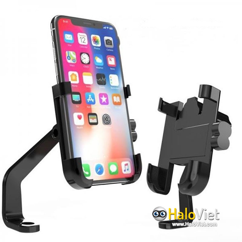 Giá đỡ kẹp điện thoại trên xe máy hợp kim nhôm cao cấp C2 - Chống rung, chống cướp cực chắc chắn