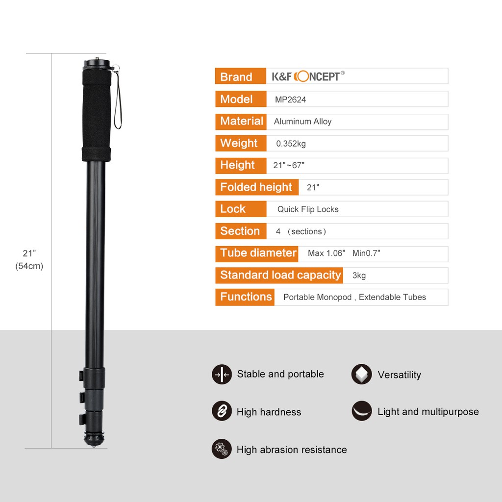 K & F Concept Monopod Hợp kim nhôm 67 "/ 171cm cho máy ảnh SLR Canon Nikon Sony