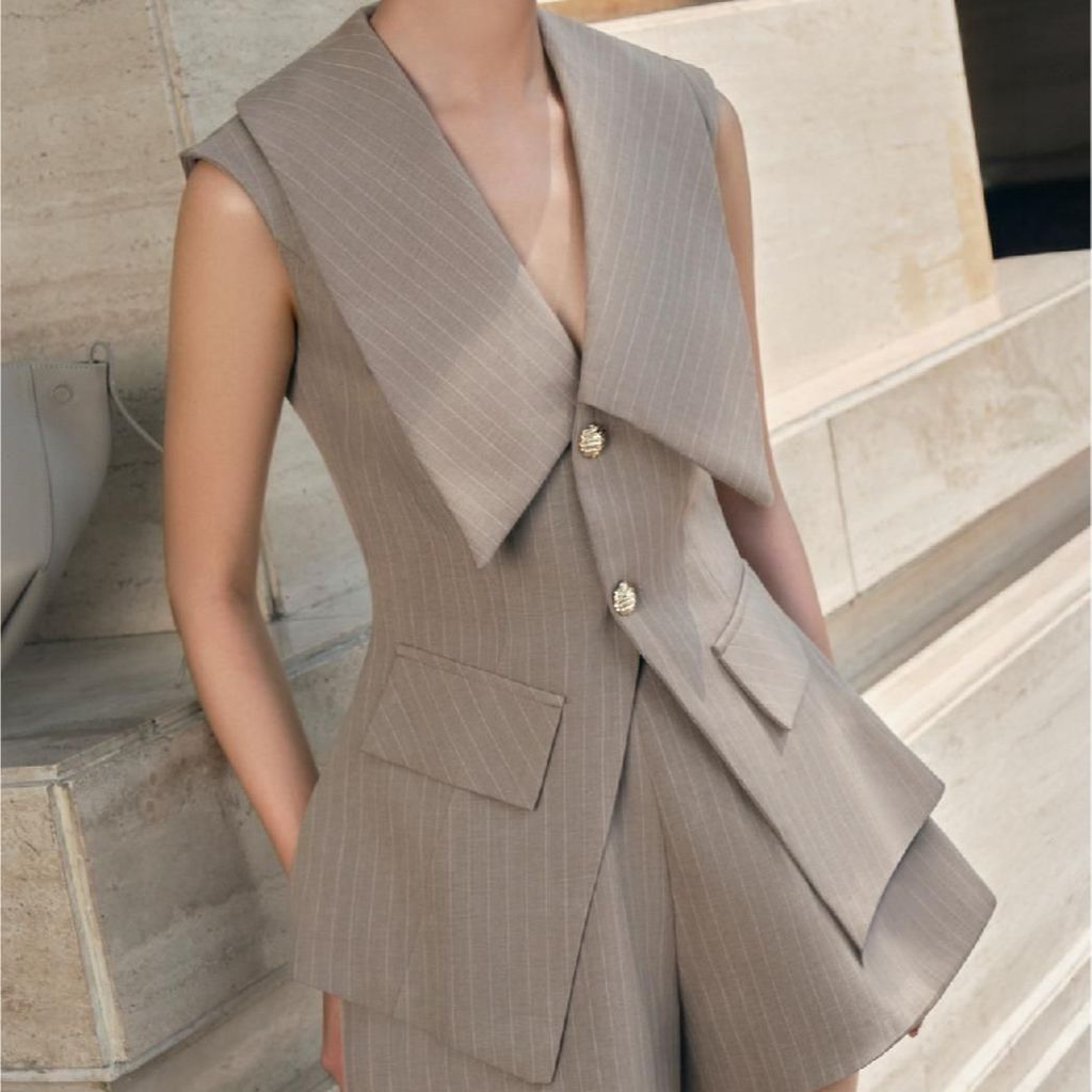 Set KAYLIN Urban Chic áo Vest form ôm phối quần short xếp ly chất vải suit sọc phong cách thanh lịch - SET140T2