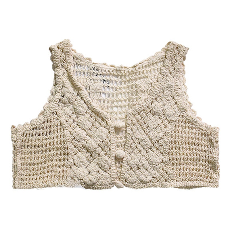 Áo Len Dệt Kim Sát Nách Cổ Chữ V Màu Trơn Phối Nút In Họa Tiết Hoa Phong Cách Pháp Cho Nữ