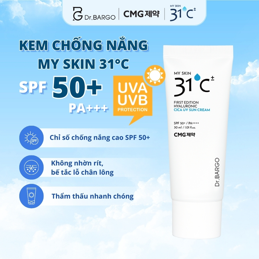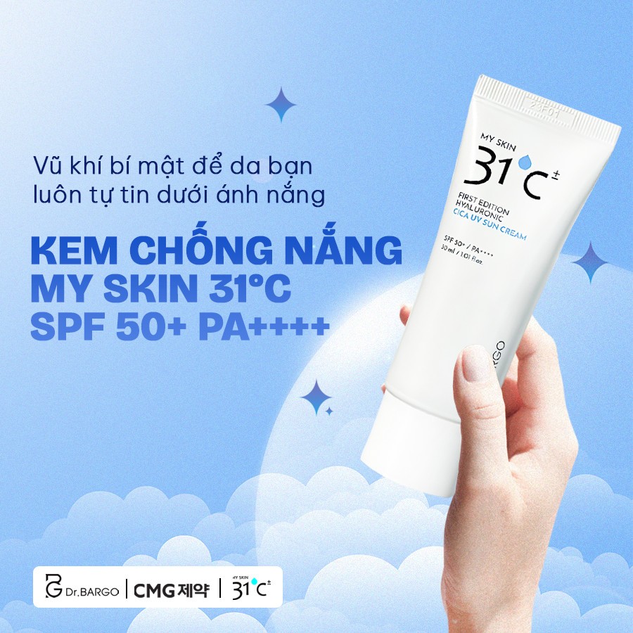 Kem chống nắng mỏng nhẹ nâng tone My Skin 31°C Hyaluronic Acid Cica UV Sun Cream SPF 50+/PA++++ 30ml