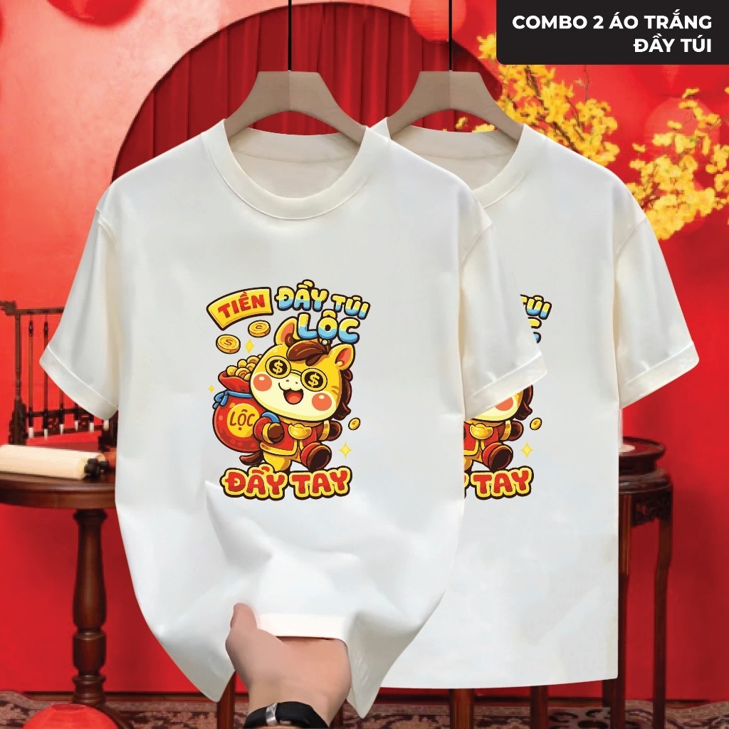 Áo Thun Tết 2026 Đầy Túi Tài Lộc May Mắn Unisex Cổ Tròn, Vải Mịn Co Giãn, Form Chuẩn Năng Động In Đẹp