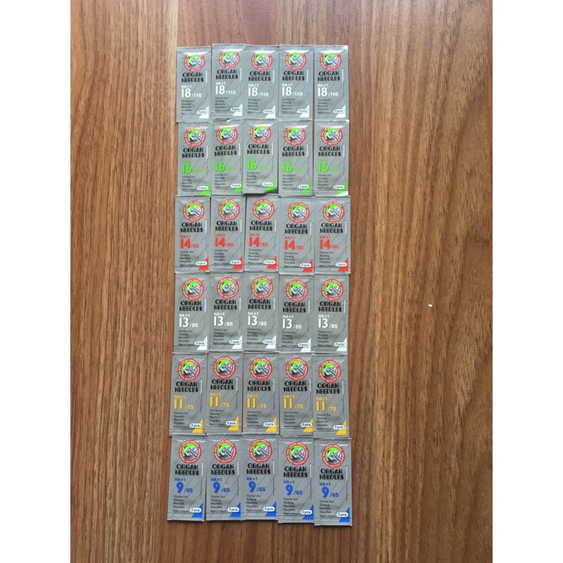 Bộ 5 vỉ kim nhật máy may gia đình kim may HA có nhiều size 9,11,13,14,16,18. ( 1 vỉ 5 cây ).