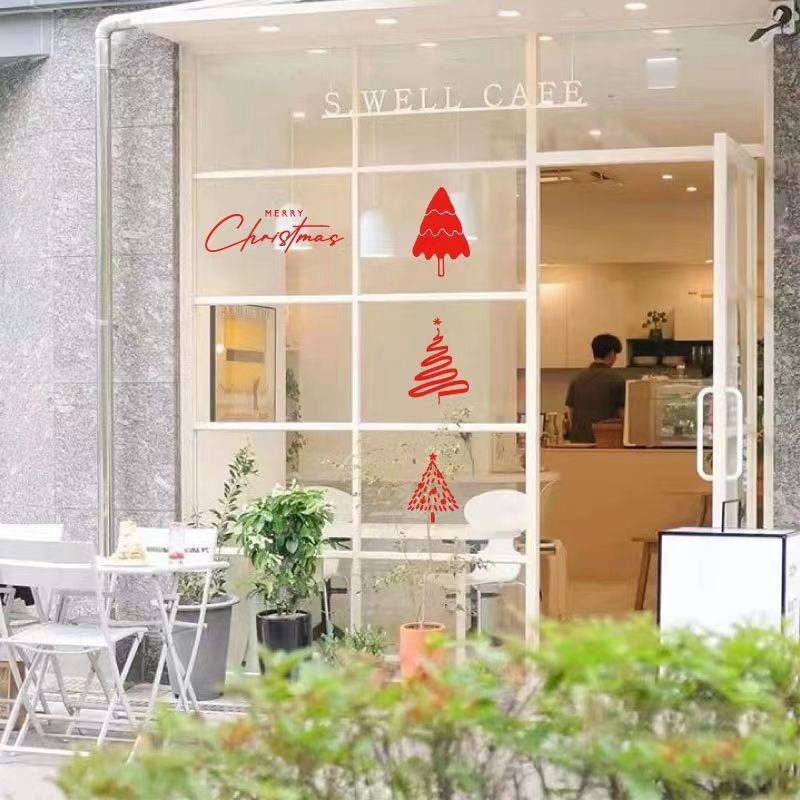 Miếng Dán Trang Trí Cửa Kính Chống Tĩnh Điện Họa Tiết Cây Thông Giáng Sinh