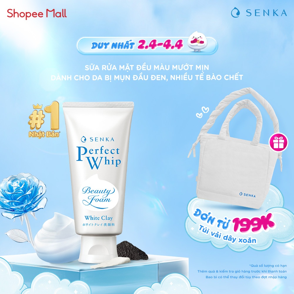 Sữa rửa mặt đều màu mướt mịn SENKA PERFECT WHIP white clay 120g