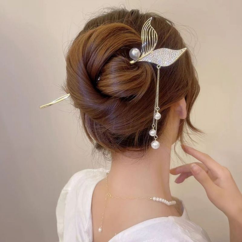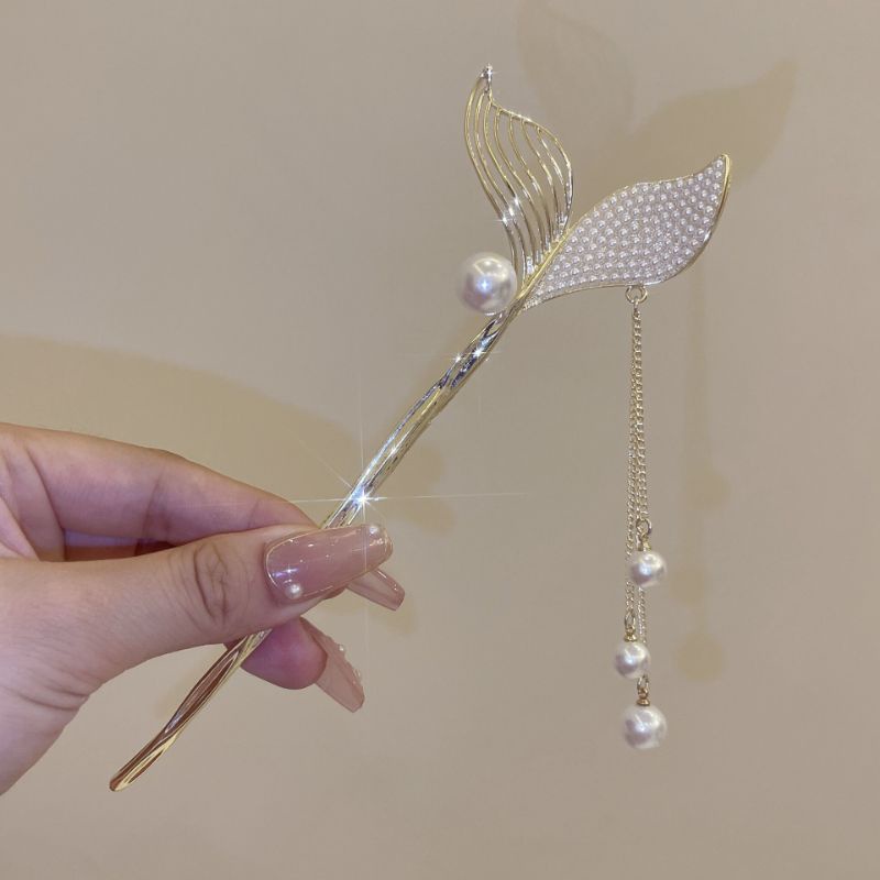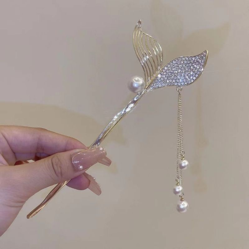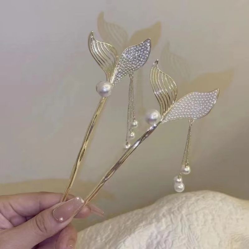 Trâm Cài Tóc Búi, Trâm Tóc Hình Đuôi Cá Đính Đá Nhân Tạo
