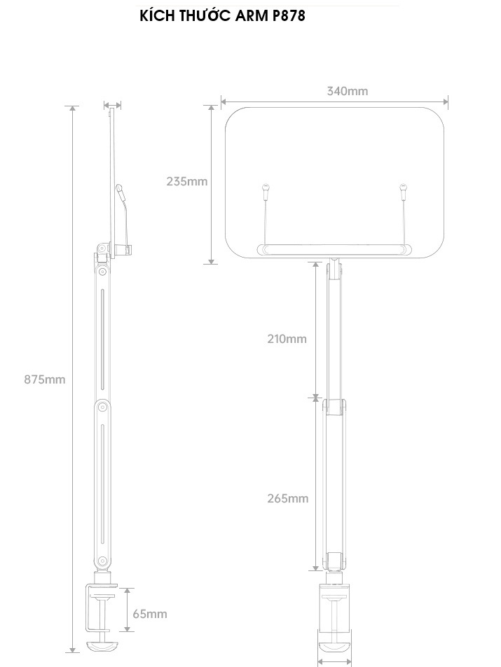 Giá đỡ sách, máy tính bảng kẹp đầu giường cạnh bàn P87P đa năng xoay 360 độ điều chỉnh mọi góc độ của DIGIMIX