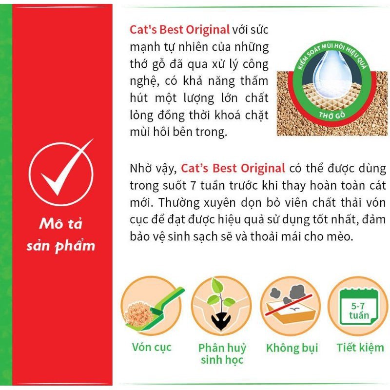 5L CÁT VỆ SINH HỮU CƠ CHO MÈO VÓN CỤC KHỬ MÙI VÀ VI TRÙNG CAT’S BEST ORIGINAL