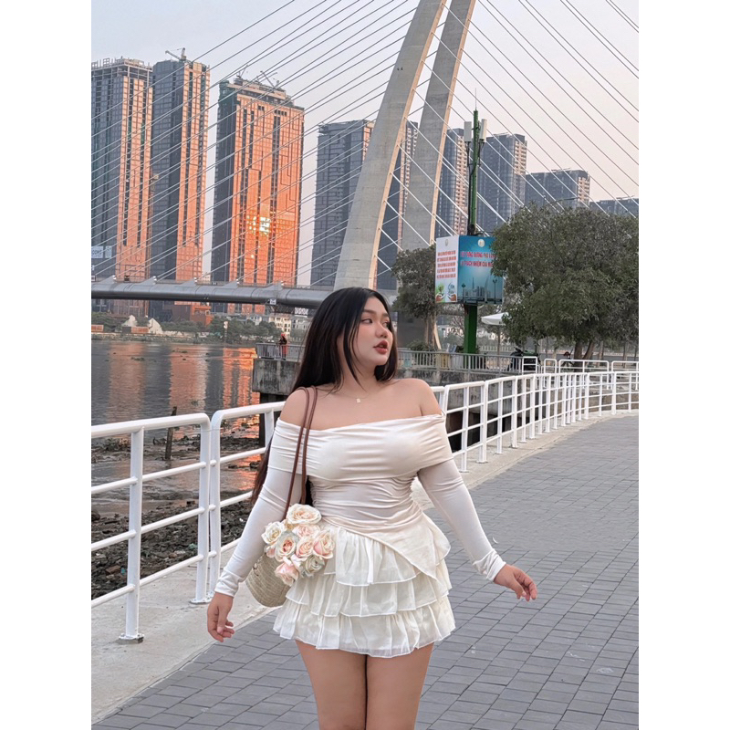 |BIGSIZE AHOLASHOP| Set LANCHY - Set chân váy voan tầng kèm áo trễ vai tay dài