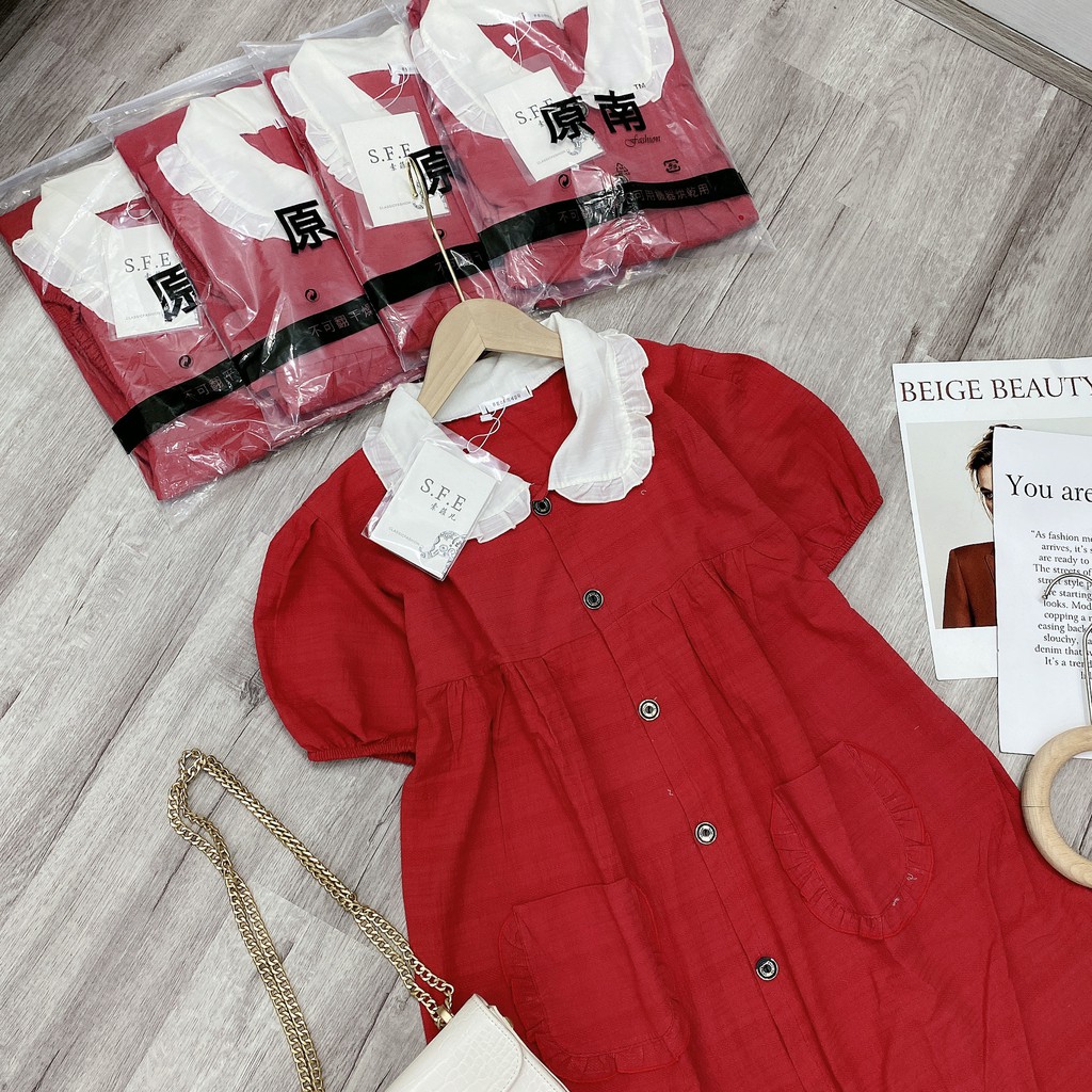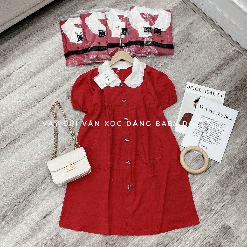 VÁY BABYDOLL ĐỎ CỔ BÈO SIÊU XINH