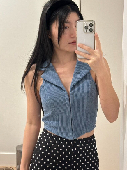 [Bigsize 45-75kg / Order] Áo sát nách cổ vét nhung tăm đuôi tôm giả khóa kéo sexy cá tính