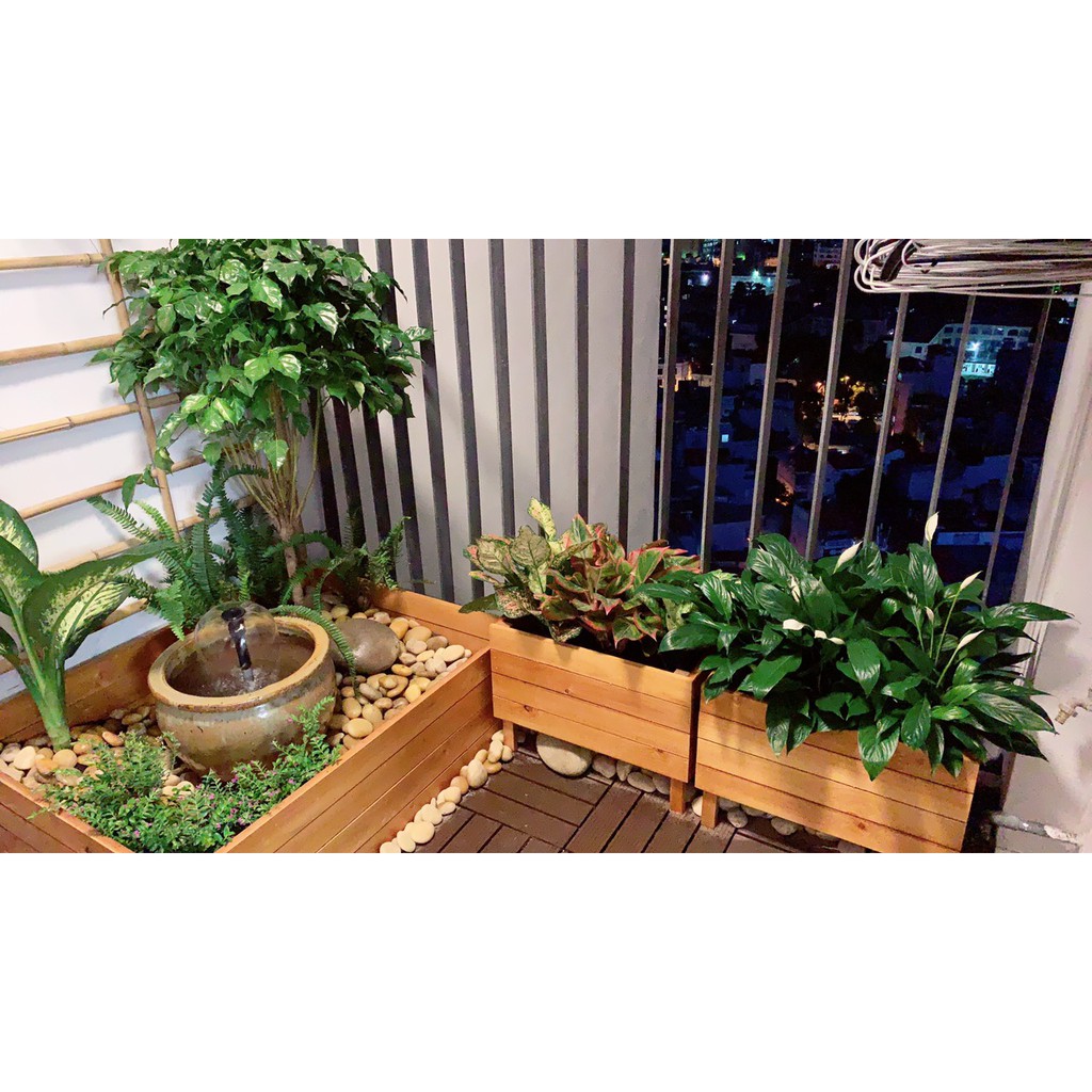 Chậu gỗ thông QUEEN6020 KT 60x20x20 cm trồng cây I Decor ban công, tiểu cảnh