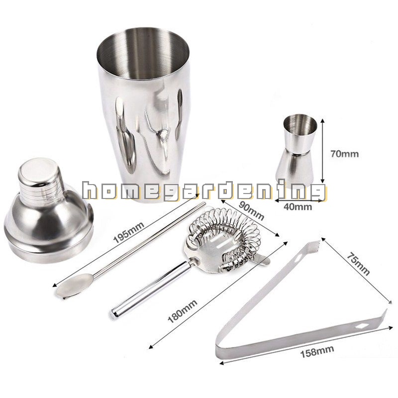 Bộ 5 dụng cụ pha chế cocktail chuyên dụng bằng thép không gỉ chất lượng cao 750ml