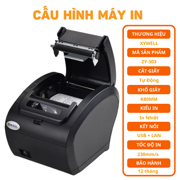 Máy in hoá đơn Zywell ZY303 - Máy in bill Zywell Zy-Q822 Cổng USB + LAN Giá Siêu Tốt Bảo Hành 12 Tháng Chính Hãng