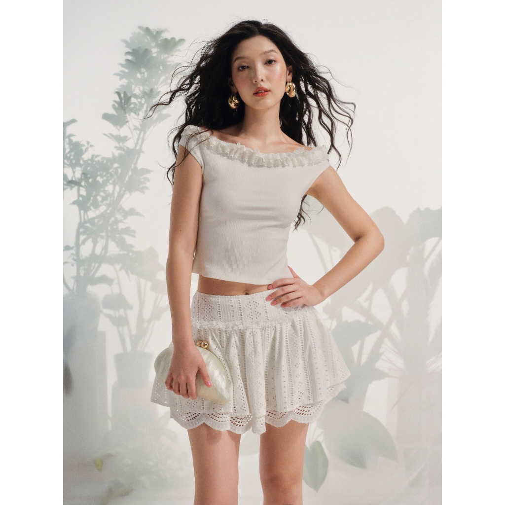 Chân Váy Xô Ngắn 2 Tầng LA BOUTIQUE Vải Xô Thêu-V026