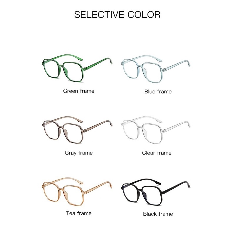 Kính mát gọng vuông lớn trong suốt chống ánh sáng xanh thời trang Hàn Quốc