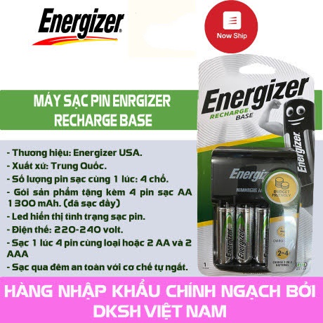 Bộ máy Sạc Pin AA- AAA kèm 4 viên pin sạc AA 1300 mAh/ 2000mAh ENERGIZER CHVC5