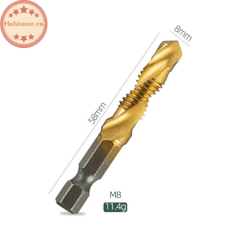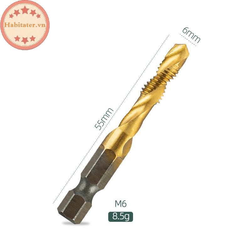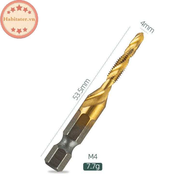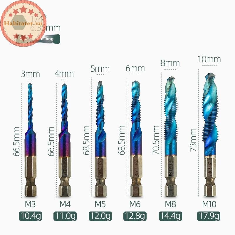 TATER M3 M4 M5 M6 M8 M10 Dụng cụ cầm tay Chuôi lục giác Mạ titan HSS Vít Thread Metric Tap Drill Bits Máy vít Hợp chất Tap VN