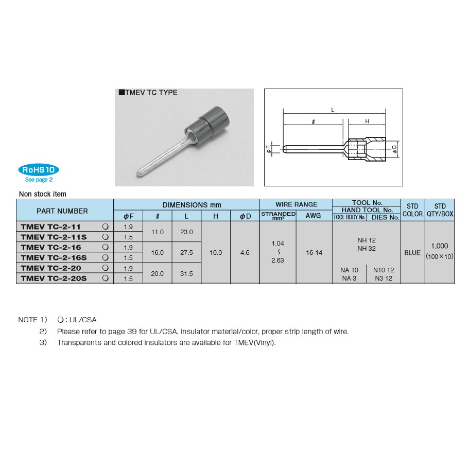 Đầu Cosse Pin Nichifu bọc nhựa cách điện TMEV TC-2 - Hộp 100 cái