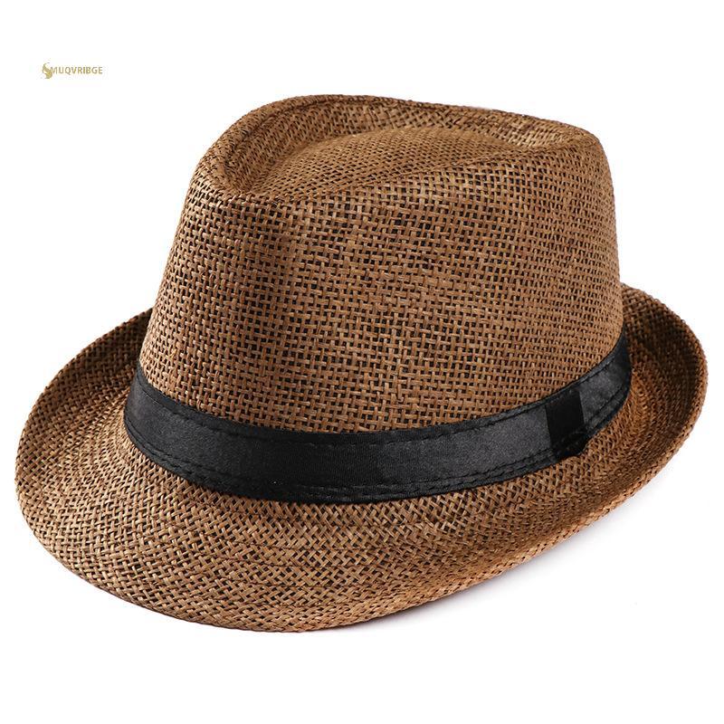 Mũ Fedora Trilby Unisex Rơm, Phù Hợp Đi Biển Mặt Trời cho Nam Nữ