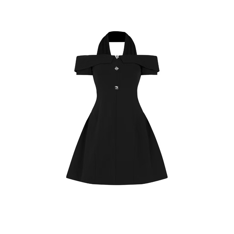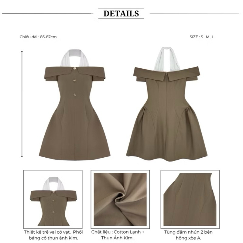 Đầm Dự Tiệc Dáng Xòe Trễ Vai Phối Cổ Trắng Chất Liệu Cotton Lạnh BBSTORE’S
