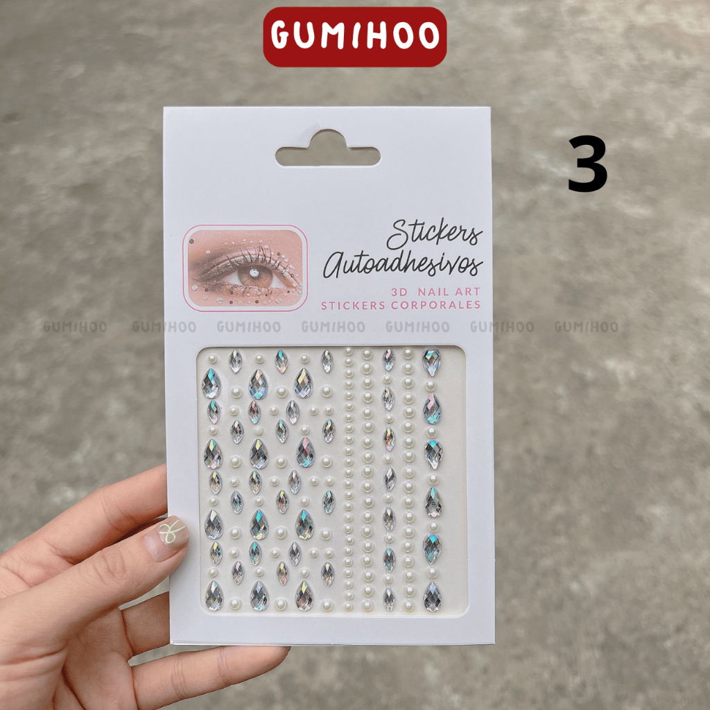 Đá đính mặt trang điểm ngọc trai nhiều cỡ, đính tóc makeup, hóa trang Gumihoo1