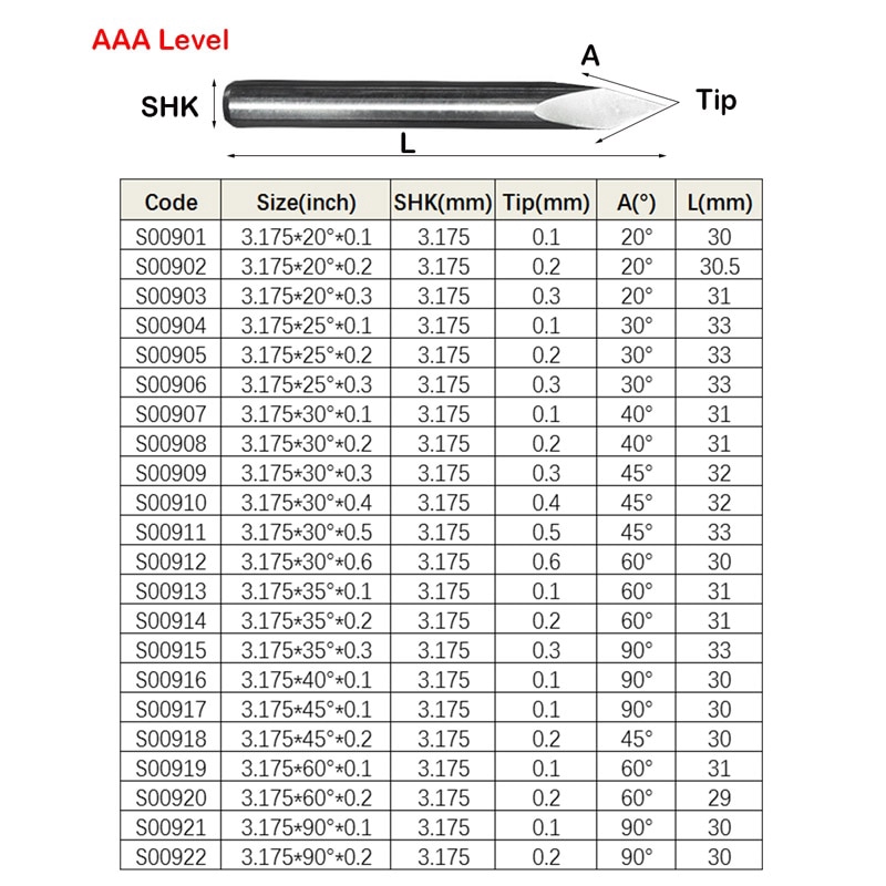 3.175mm Shank 3 Mặt End Mill CNC Khắc Máy Dụng Cụ Gỗ Ngọc Emboss Kim Loại Khắc Tam Giác Router Bit Cho Nhôm