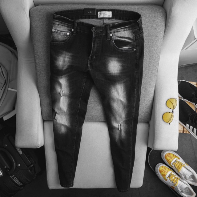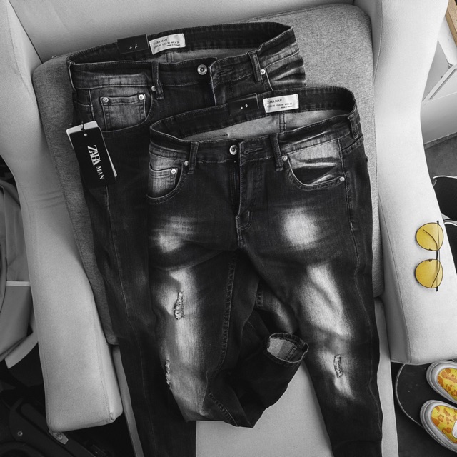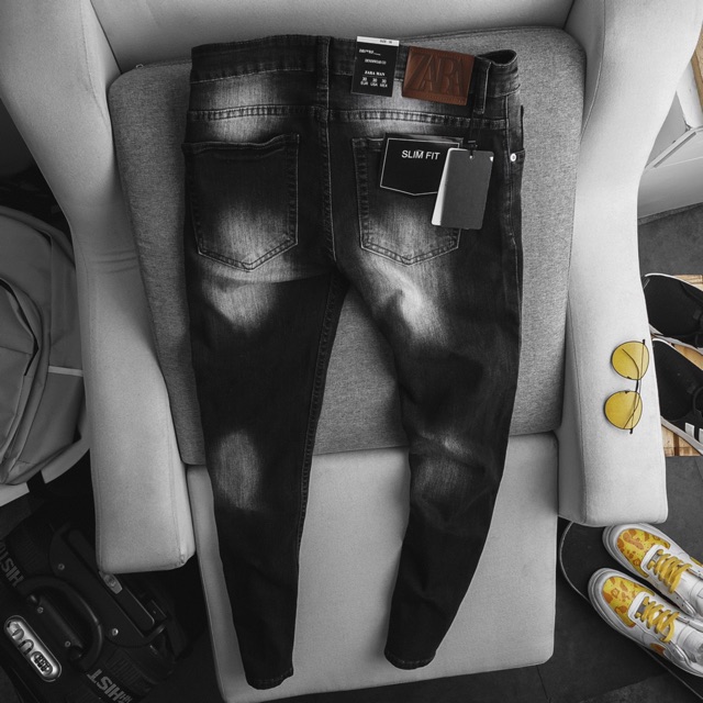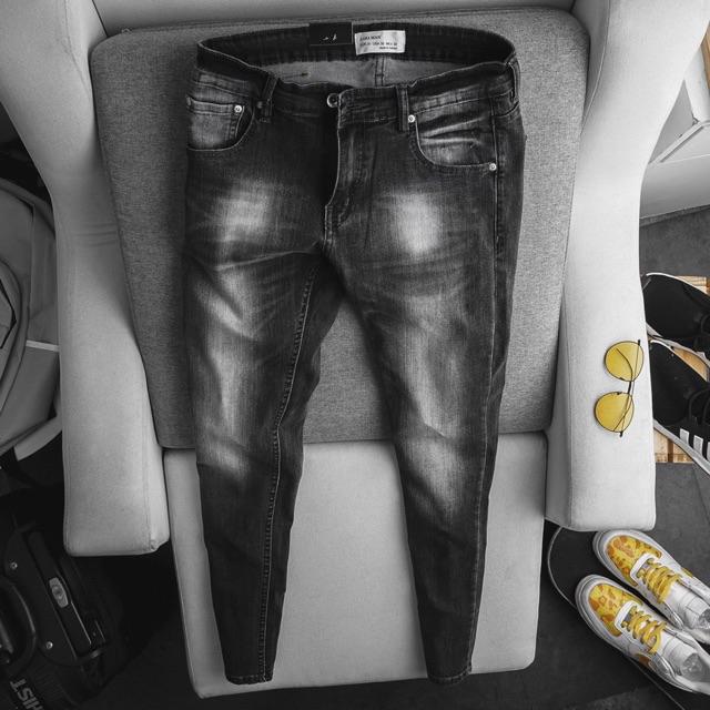 Quần Jean nam xuất xịn ZR đen xám rách -Form slimfit
