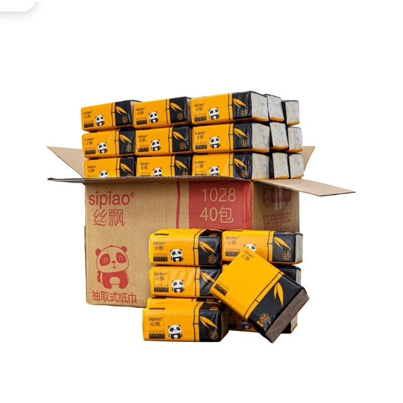 Thùng 40 gói giấy ăn gấu trúc Sipiao siêu dai - chuẩn nội địa Trung