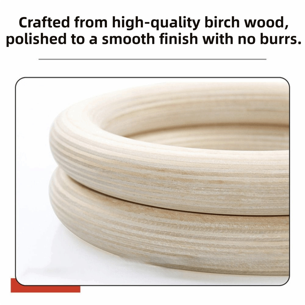 JESJELIU 2 Vòng tập thể dục, Nhẫn treo phòng tập thể dục bằng gỗ nguyên khối đa kích thước, Huấn luyện tập thể dục hạng nặng Chịu lực chắc chắn chống trượt Kéo lên Nhẫn tập thể dục tại nhà