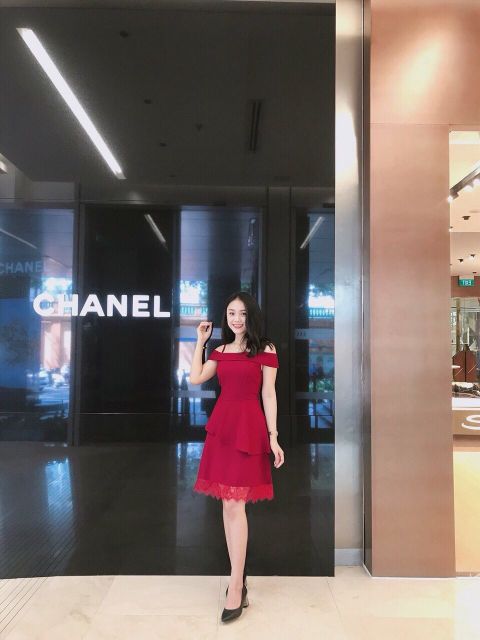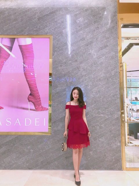 Đầm xòe trễ vai phối ren