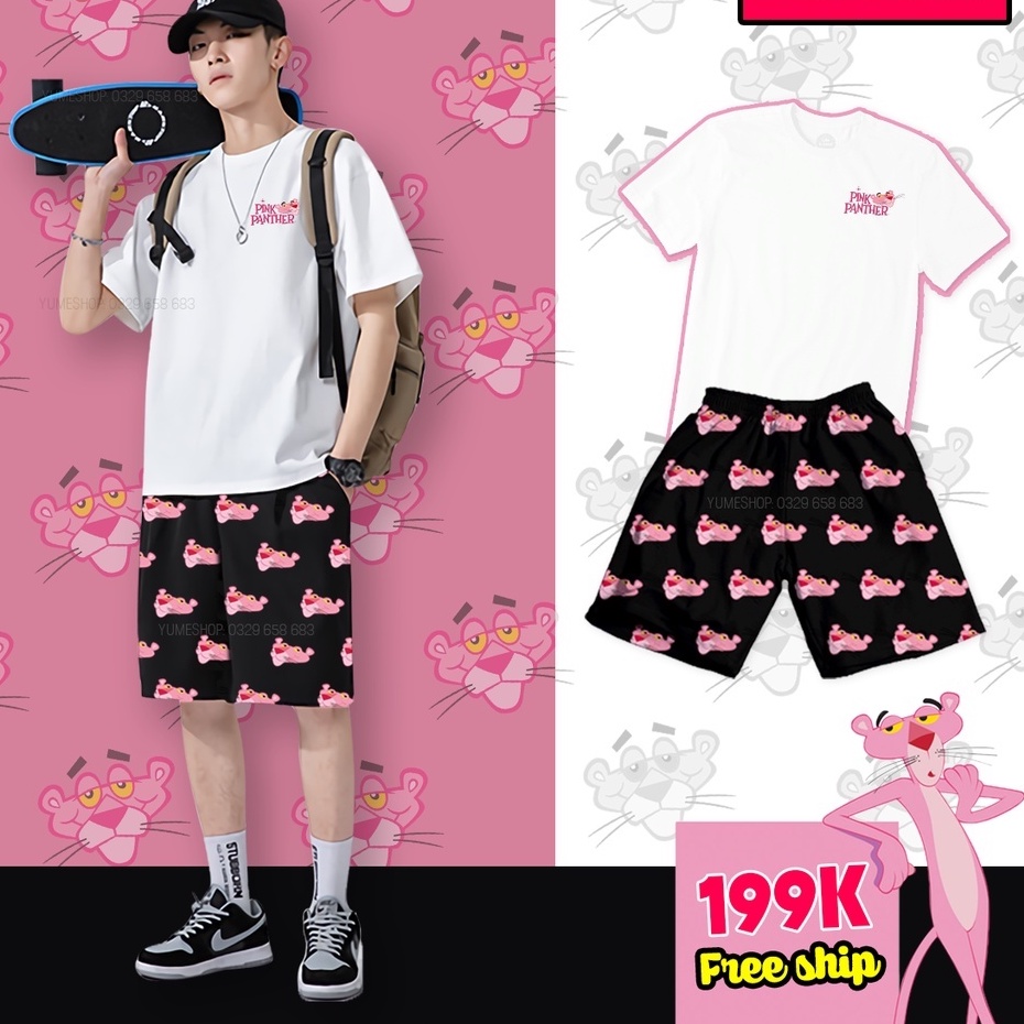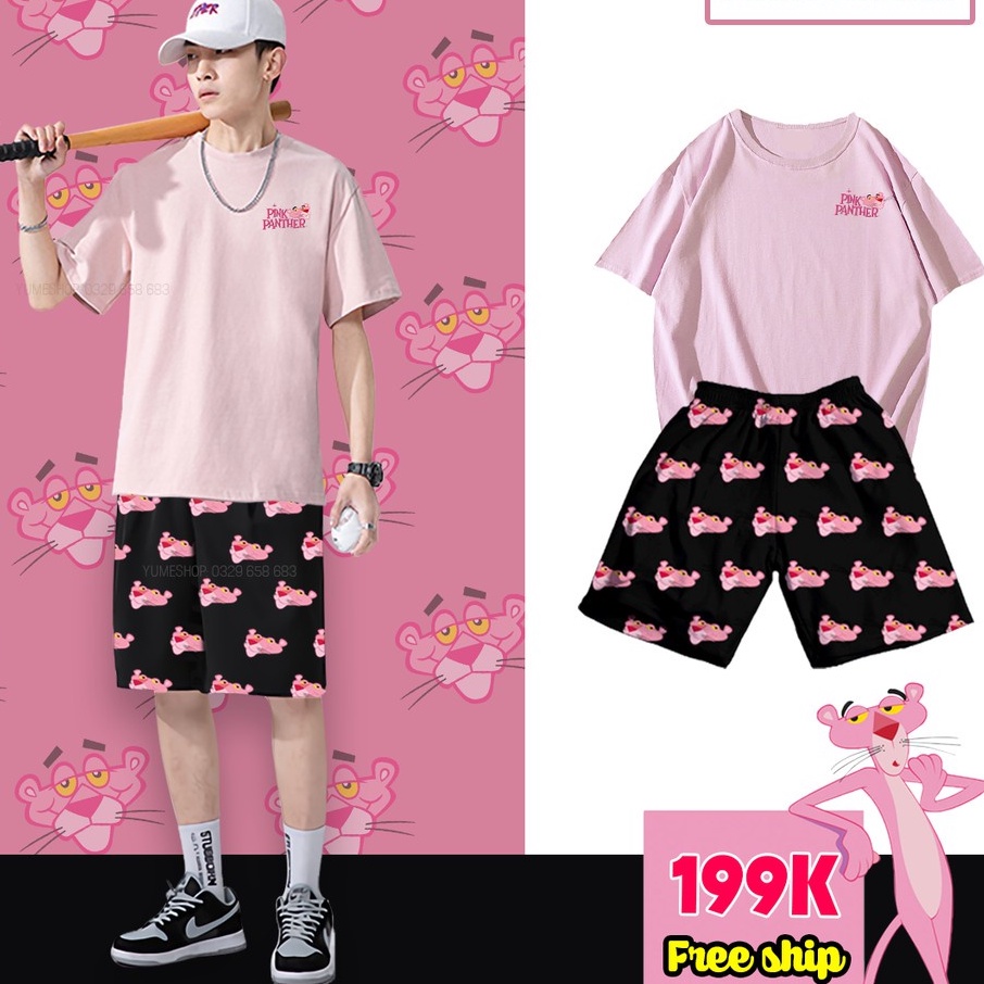 Bộ quần áo thun nam nữ unisex hoạt hình báo hồng The Pink Panther