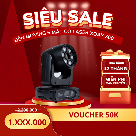 Đèn Moving 150W 6 Mắt Laser Dùng Trong Phòng Karaoke, Bar Mini , Phòng Bay...