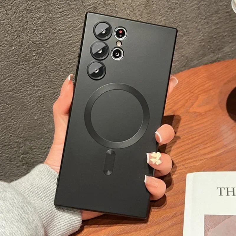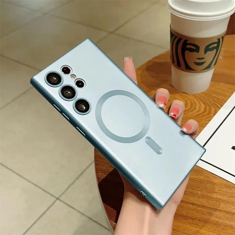 Sang Trọng Mờ Từ Tính Dành Cho Samsung Galaxy S24 Plus S24FE S24 Ultra Cho Magsafe Sạc Không Dây Bìa Mềm Phụ Kiện