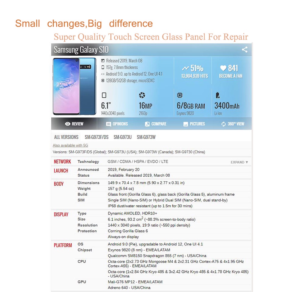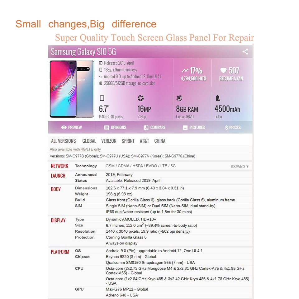 Thay Thế Cho Samsung Galaxy S10 5G S10E Plus Màn Hình Cảm Ứng Mặt Trước LCD Kính Bảng Điều Khiển Bên Ngoài Ống Kính Kính S10 Lite Bảng Điều Khiển Cảm Ứng