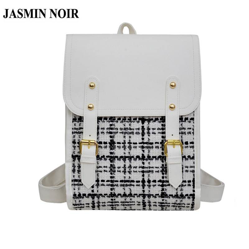 Jasmin NOIR Da PU và Len chắp vá Ba lô nữ Khóa thông thường Xô Túi đi học Túi du lịch sức chứa lớn