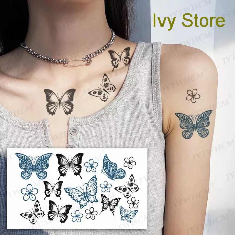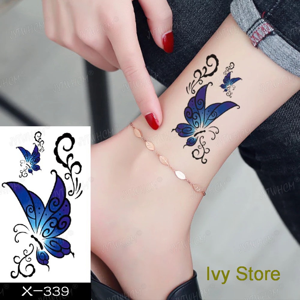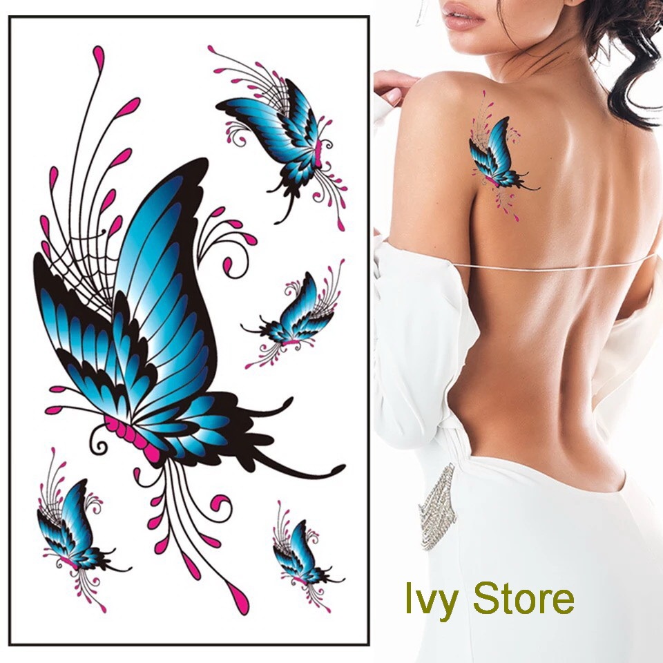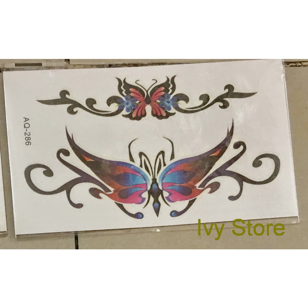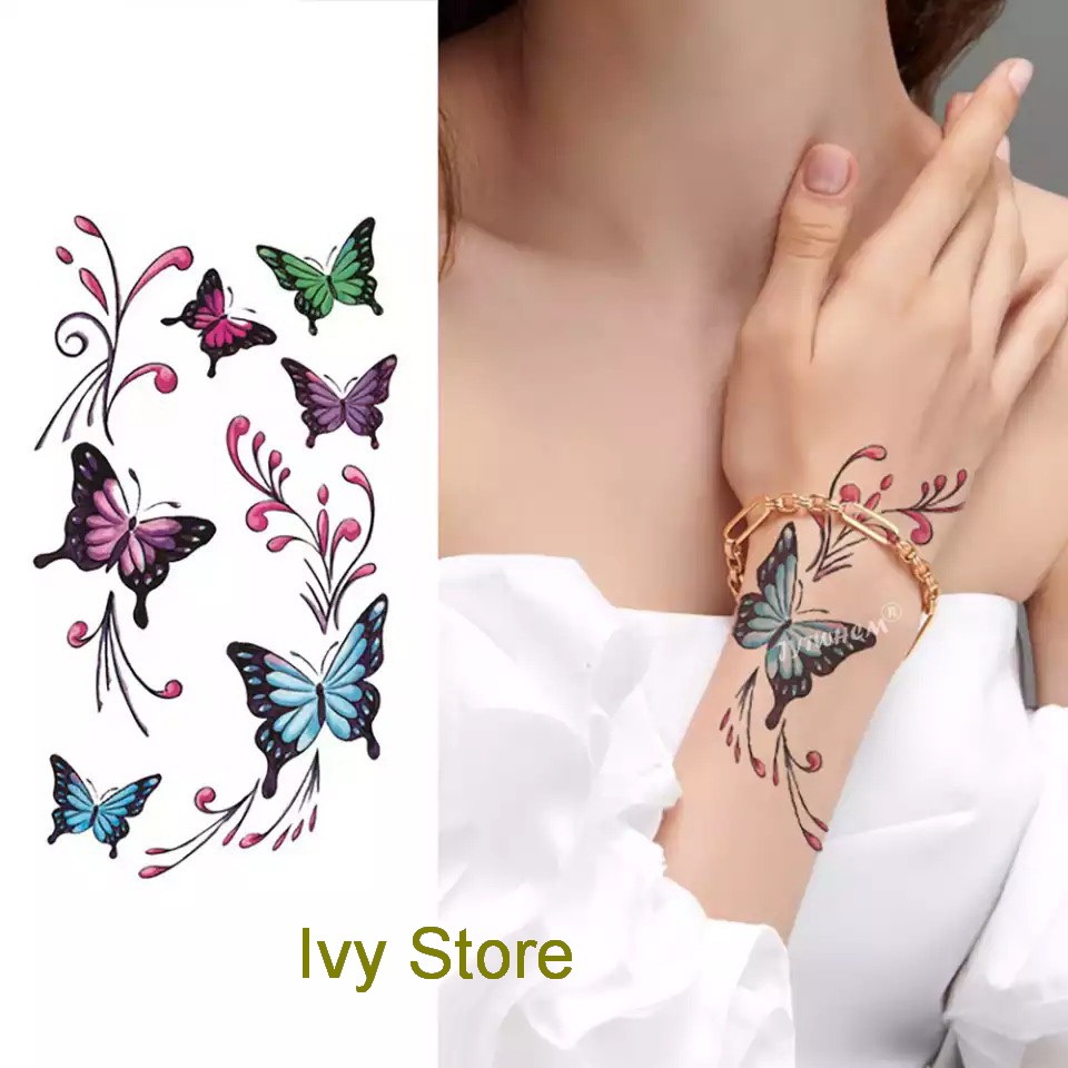 Sticker Tattoo hình bướm xinh 10.5 x 6cm nhiều mẫu, Hình xăm dán tạm thời, Hình Xăm Nữ HCM, Tattoo Butterfly