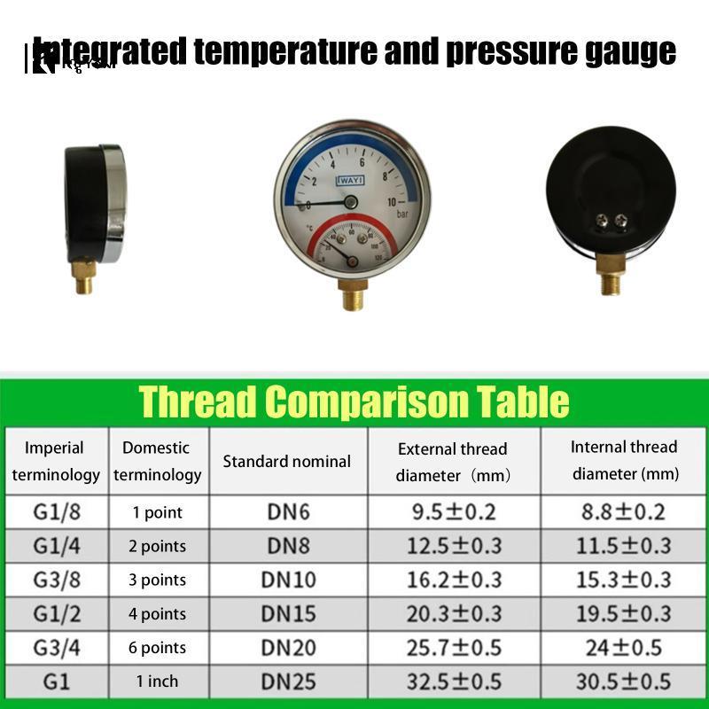 Đồng hồ đo áp suất 2 trong 1 KgYewl và đồng hồ đo nhiệt độ và áp suất 10 thanh Nhiệt độ 0-120°Đồng hồ đo nhiệt độ và áp suất C Mới