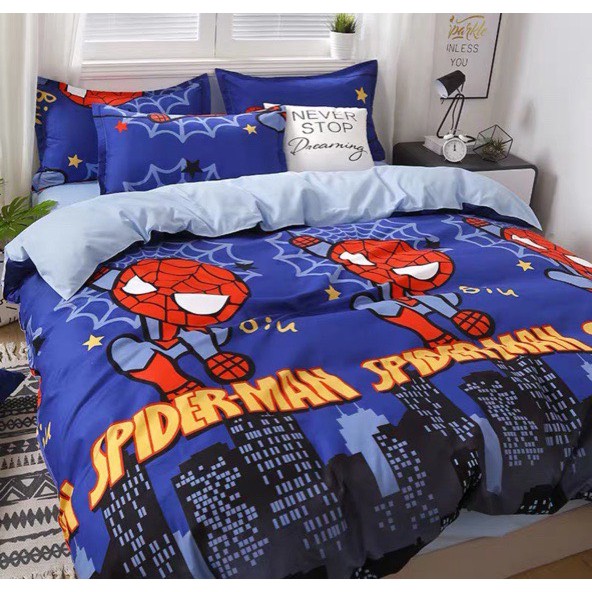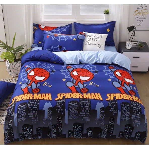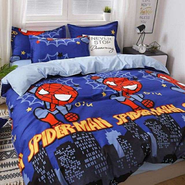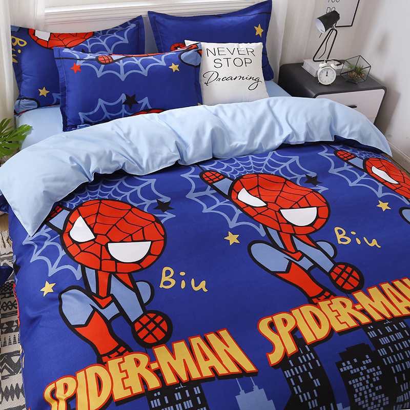Bộ Chăn Ga Gối Cotton Poly Mẫu Người Nhện Cho Bé