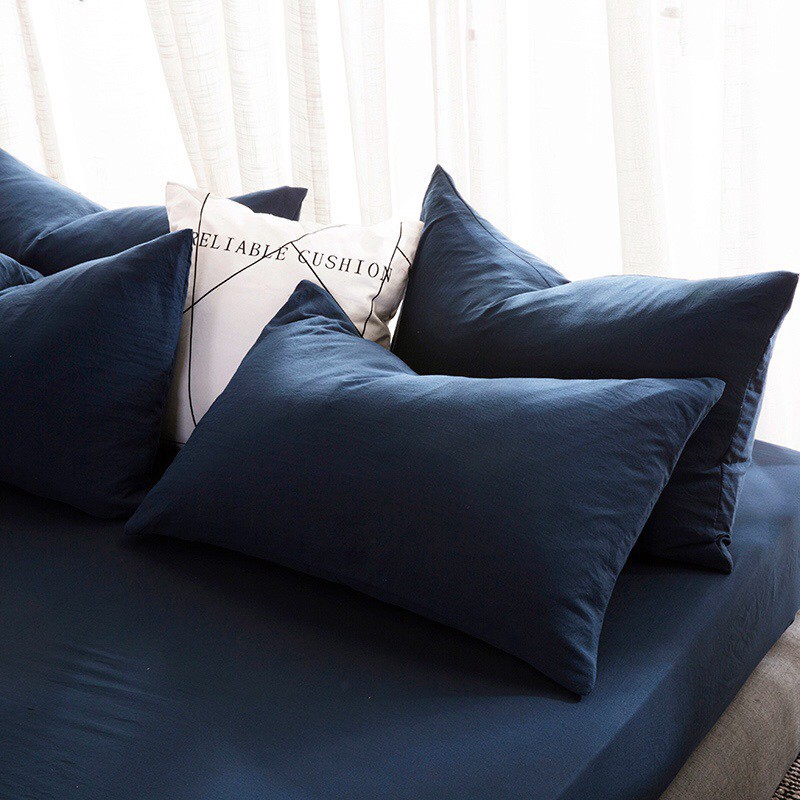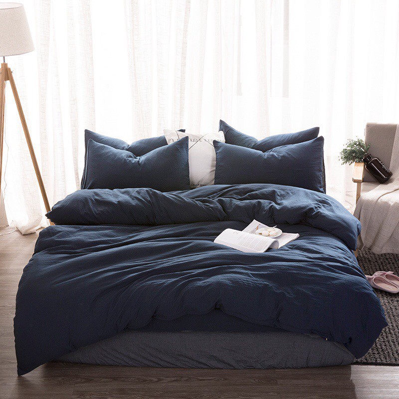 Set Vỏ Chăn Kèm Ga Gối Đũi Muji Xuất Nhật Màu Xanh Than