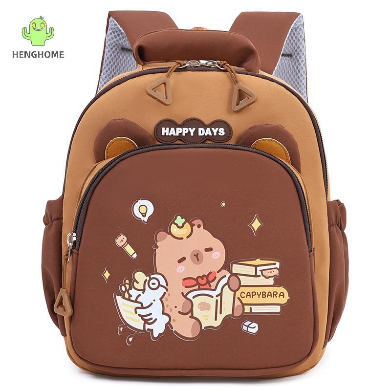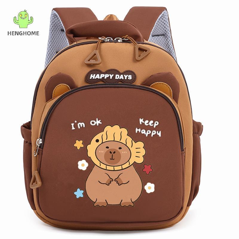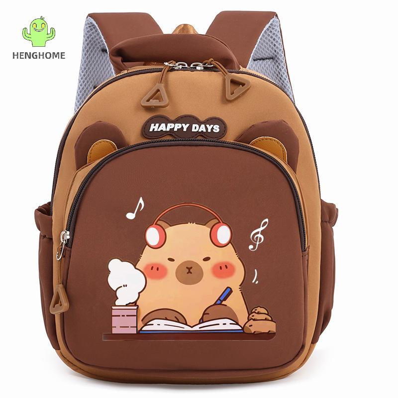 HENGHOME Phim hoạt hình dễ thương Ba lô Capybara Mẫu giáo Trẻ em Túi đi học thông thường Daypack Du lịch Túi đi học dung tích lớn dành cho trẻ em Quà tặng *