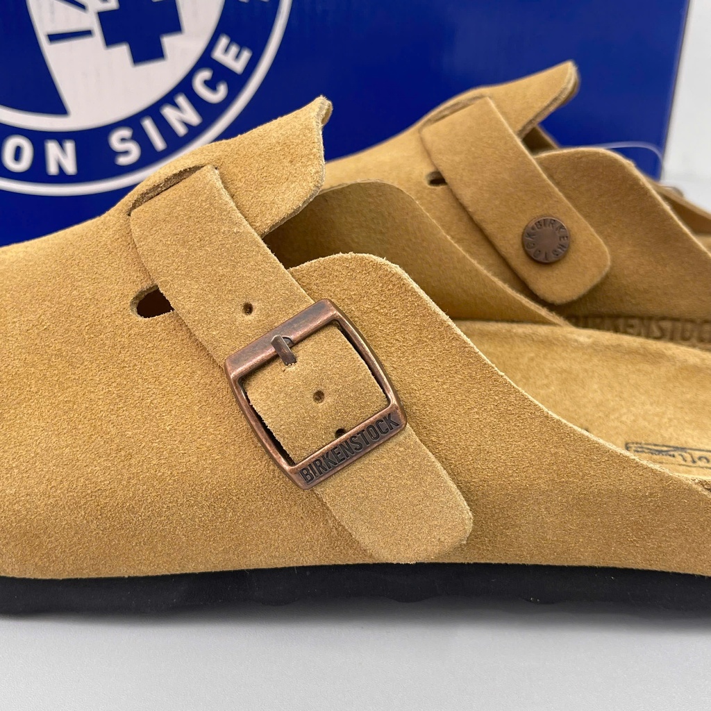 Giày Clog Boston Birkenstock Đế Trấu Da Lộn Màu Flax - High Quality Fullbox