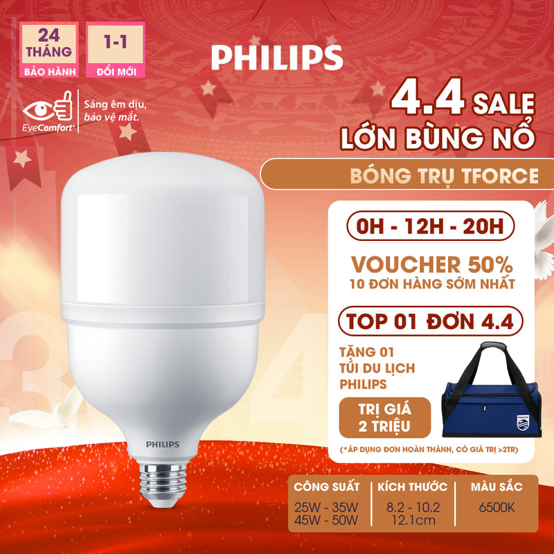 Bóng đèn LED PHILIPS trụ TForce siêu sáng (25W,35W,45W, 50W) - Ánh sáng trắng 6500K (01 bóng) - Đèn Philips